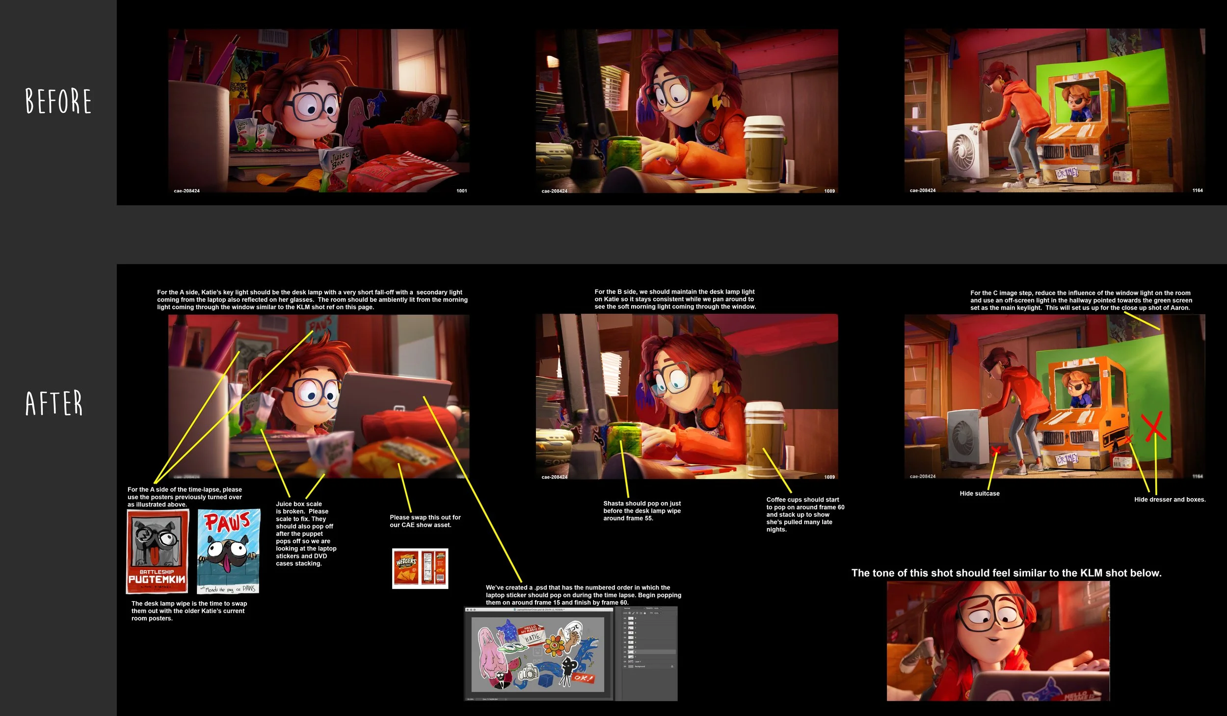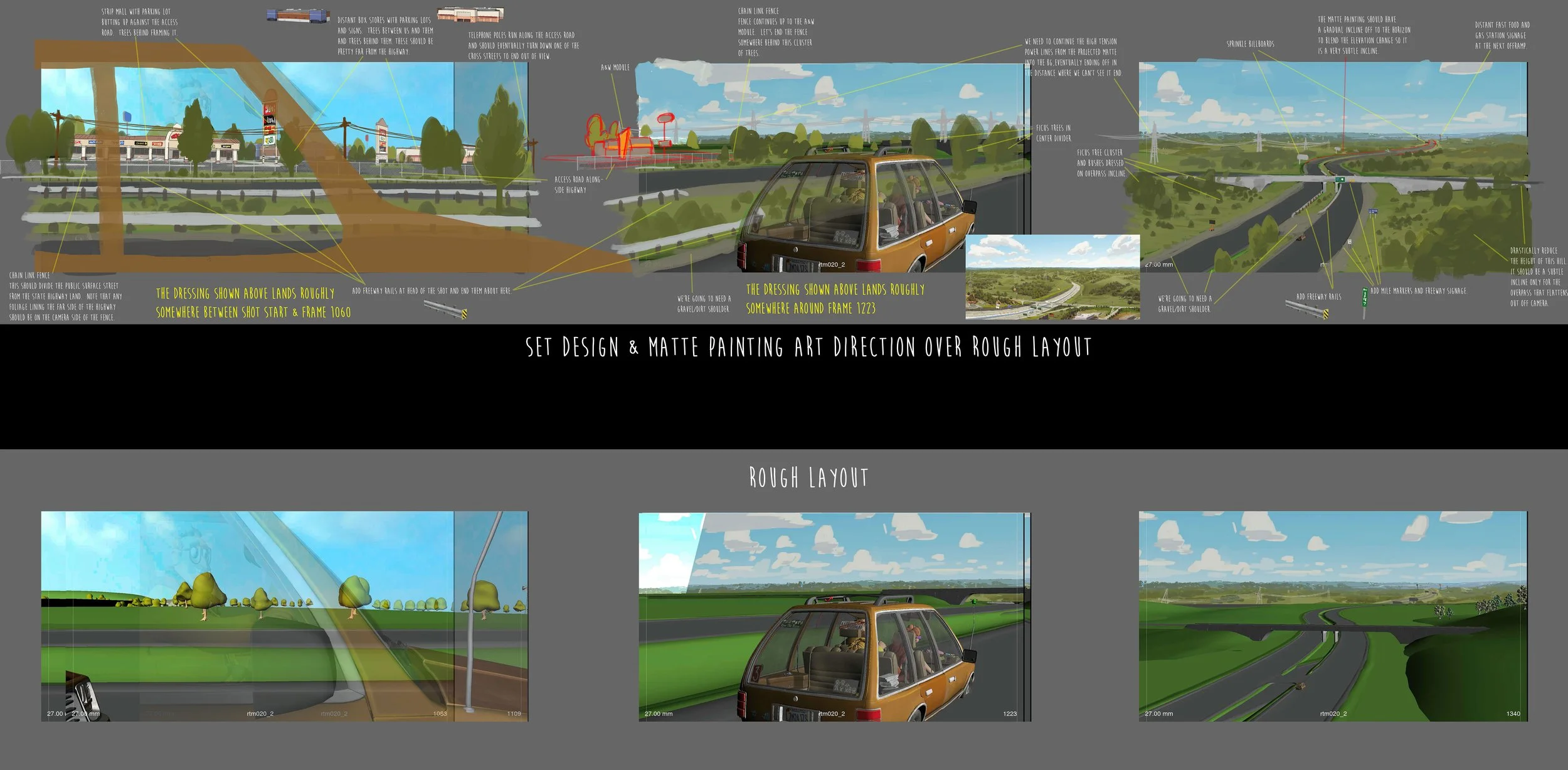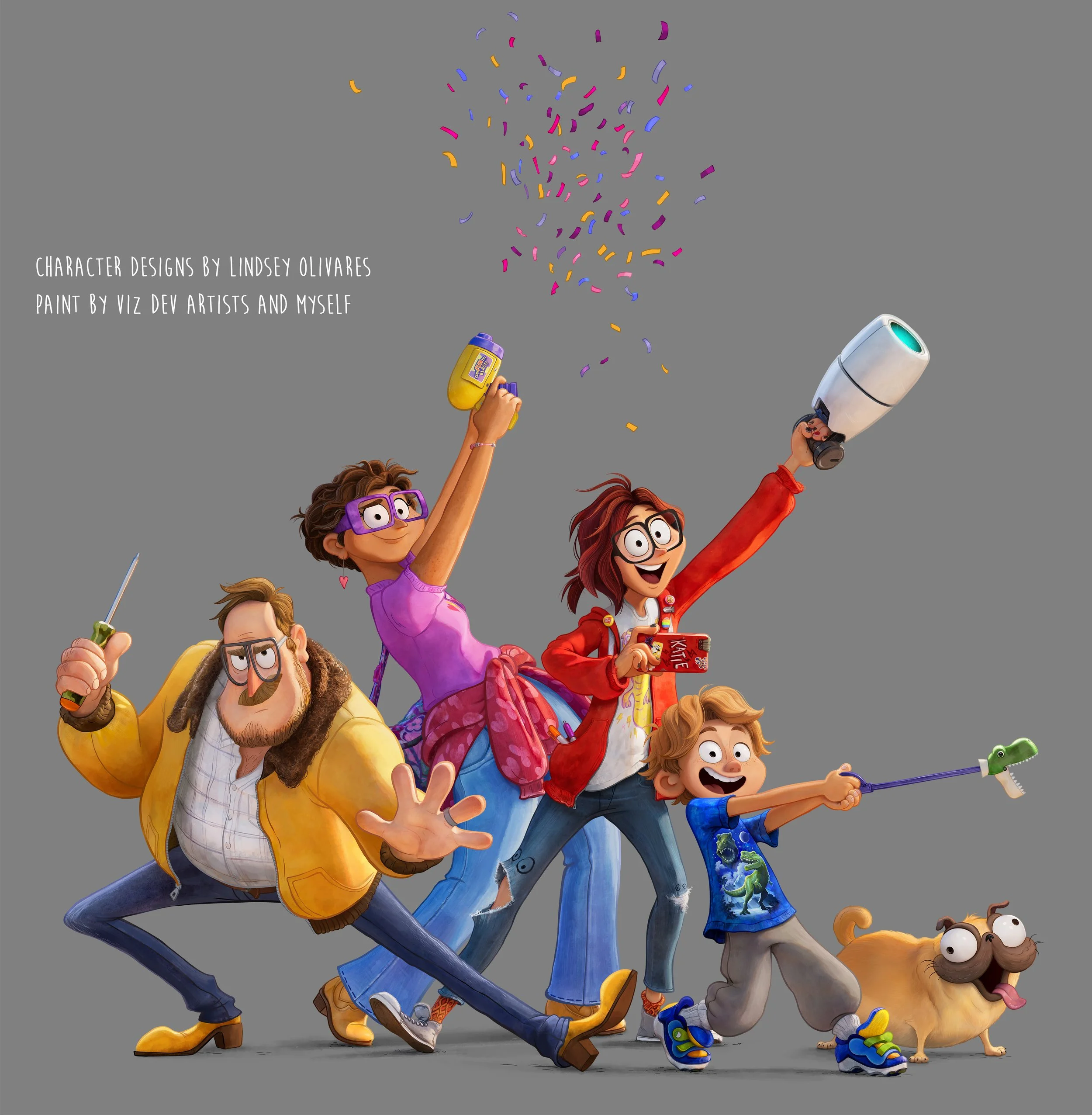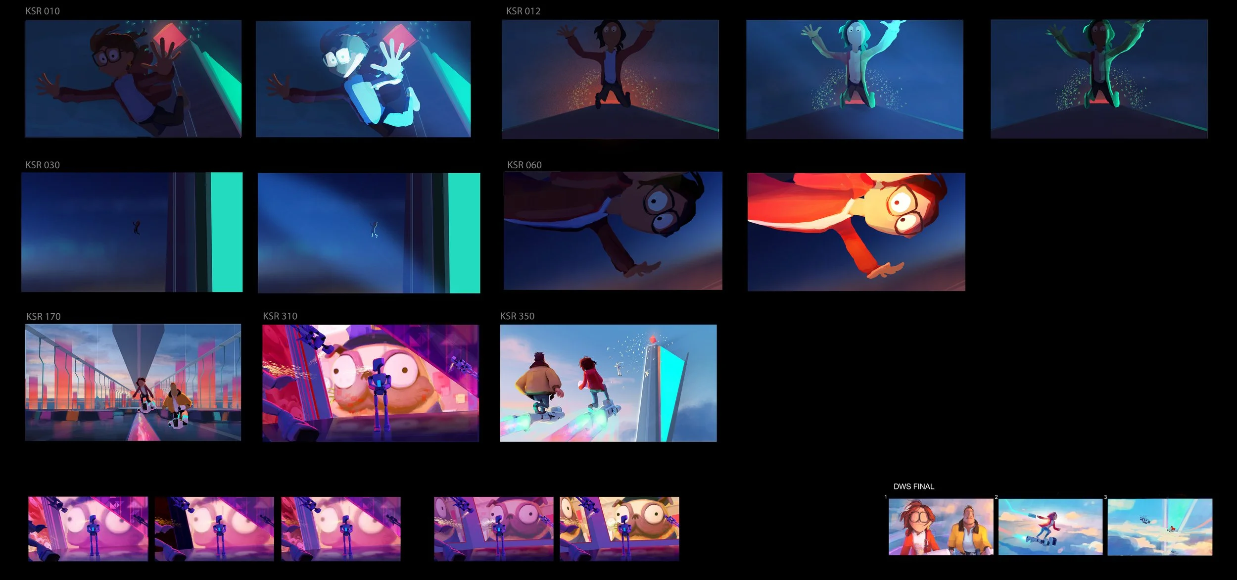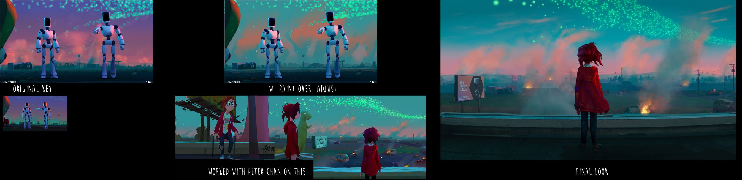 I was the art director on Mitchells vs the Machines, working closely with Lindsey Olivares our production designer and Dave Bleich our lighting & color designer. Responsibilities of the role included: establishing how to translate the look of the show onto the screen in look dev, art directing and managing the visual development of sets - props - graphics - & concept geometry, filling the role of Layout Lead for 3 months and after after Rich Turner was hired to fill the position I continued to assist the directors with achieving the cinematic vision they were after, art directing set dressing and FLO, assisting Lindsey & Dave through lighting & comp, and art directing marketing assets.